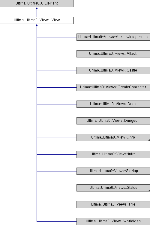 Base view class for screens and dialogs that appear on-screen. The View class takes care of two important things: 1) By default events get sent to all controls on a view until one handles it. For mouse events, we instead want only the control the mouse cursor is over to receive the events, saving the individual controls from having to check if the mouse is within their bounds. 2) Individual elements will get a Focus/Unfocus message as the mouse enters and leaves them. This allows, for example, buttons that have been pressed to de-select if the mouse leaves their bounds.